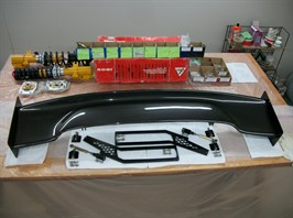 Comes with Black Powder coated finish on Wing Tip ends, Spoiler pedestals and body mounts.  Variable pedestal mounting widths up to 27" apart.