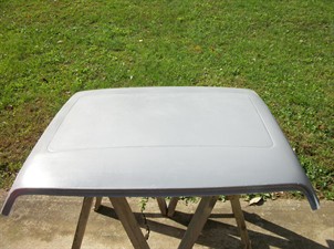PN:93468-FRP - This is our new Hand laid Fiberglass 924/ 924S/ 944/ 951 and 968 coupes roof panel with permanent sunroof impression for added rigidity. This part utilizes a central internal stiffening composite material. These complete roof panels include material beyond the stock mounting points on the windshield pillars an also below the stock welded seam joints on the rear hatch pillars. This part includes all roof panel oem surrounding spot weld areas, rear hatch hinge mounts positions and the drivers electrical wiring hole are all visible and are not drilled out.